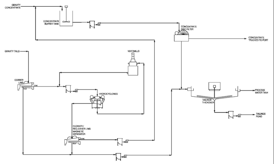 - A scaled version of the magnetic concentrator plant from the 2012 PFS, substituting the Ball Mill with more energy efficient Verti-Mills.